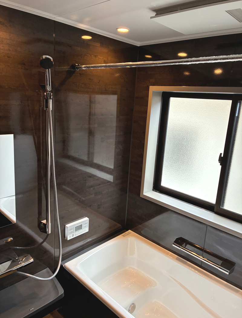 鋳物ホーロー浴槽や鏡面壁パネルがダウンライトに映える素敵な浴室に生まれ変わりました!